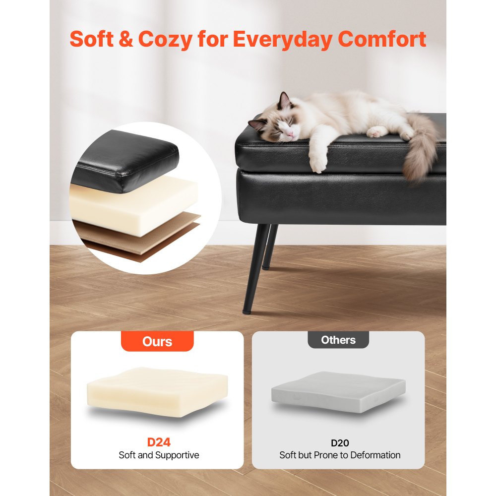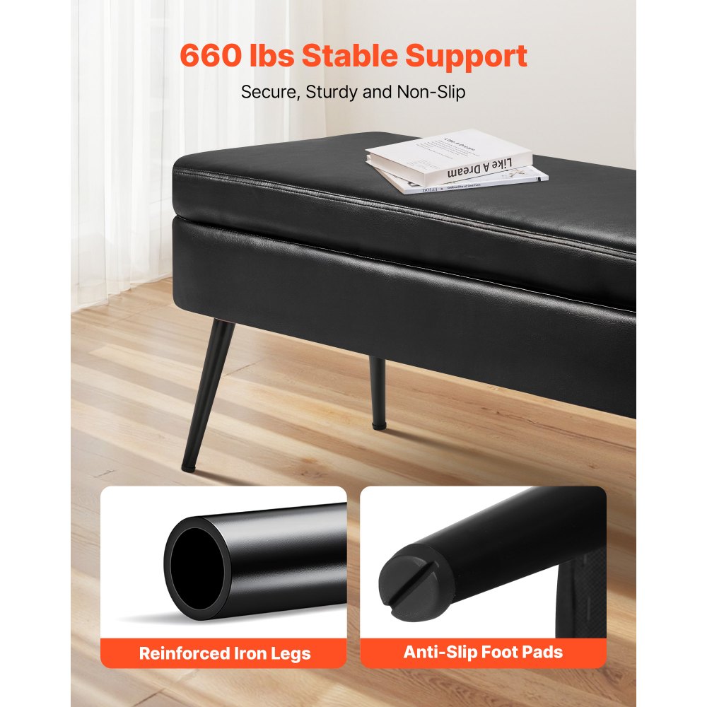 Banco de Cuero con Almacenaje, Banco Tapizado de Cuero Sintético de 400 x 1200 x 450 mm con Almacenaje y Patas de Metal, Cojín de Espuma, para Sala de Estar, Comedor y Pasillo, Negro - Material de oficina