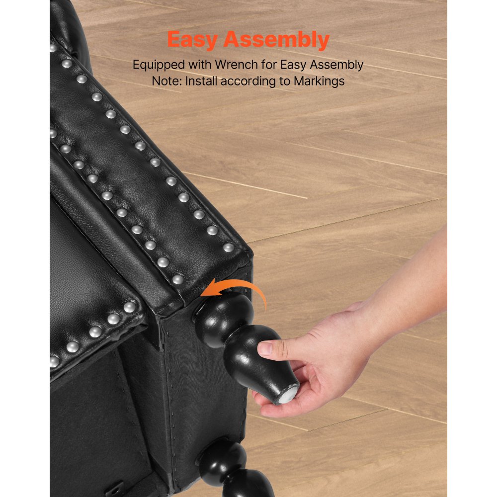 Banco de Cuero con Botones, Banco Tapizado de Cuero Sintético 460 x 1660 x 560 mm con Almacenaje, Brazos Enrollados y Patas de Madera Maciza, Cojín de Espuma, para Sala de Estar, Negro - Material de oficina