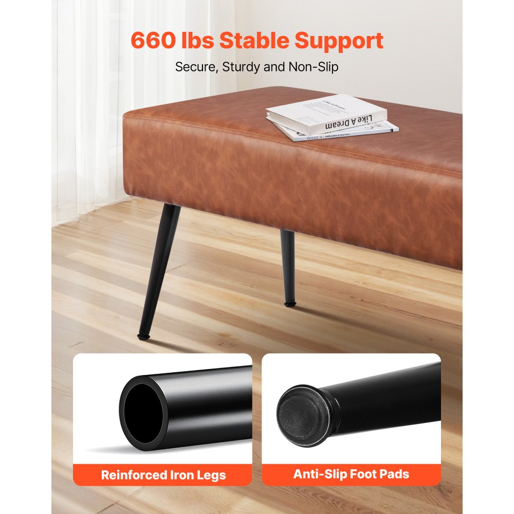 Banco de Dormitorio de Cuero, Banco Moderno Tapizado de Cuero Sintético 400 x 1100 x 430 mm con Patas de Metal y Costuras, Cojín de Espuma, para Sala de Estar, Comedor y Pasillo, Marrón - Material de oficina