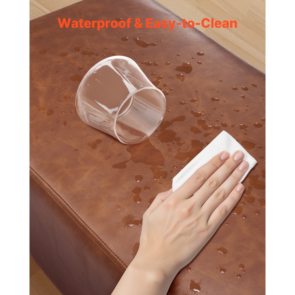 Cuero sintético premium: Revestido en cuero sintético suave de alta calidad, suave al tacto y fácil de limpiar. Resistente al agua y de bajo mantenimiento, con finos detalles cosidos que aportan elegancia y durabilidad a tu dormitorio
