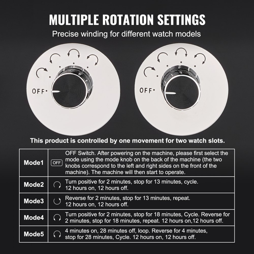 Motor Mabuchi duradero: Para mejorar la estabilidad y durabilidad, incorporamos un motor Mabuchi japonés conocido por su alto torque, tamaño compacto, control preciso, bajo consumo de energía y larga vida útil. Además, dos botones controlan dos esferas de reloj, lo que permite que una sola esfera acomode dos relojes, satisfaciendo las necesidades de diferentes modelos de relojes.
