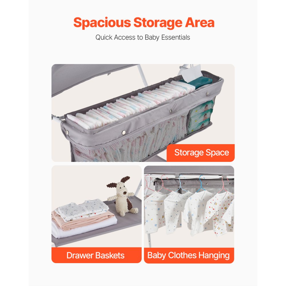 Almacenamiento espacioso: Ya sean pañales, toallitas, talco para bebés u otros artículos esenciales para bebés, hemos diseñado un amplio espacio de almacenamiento para todo lo que necesitas. Esta práctica configuración te permite acceder rápidamente a lo que necesitas y reduce el estrés de buscar artículos, lo que hace que el cuidado del bebé sea más eficiente