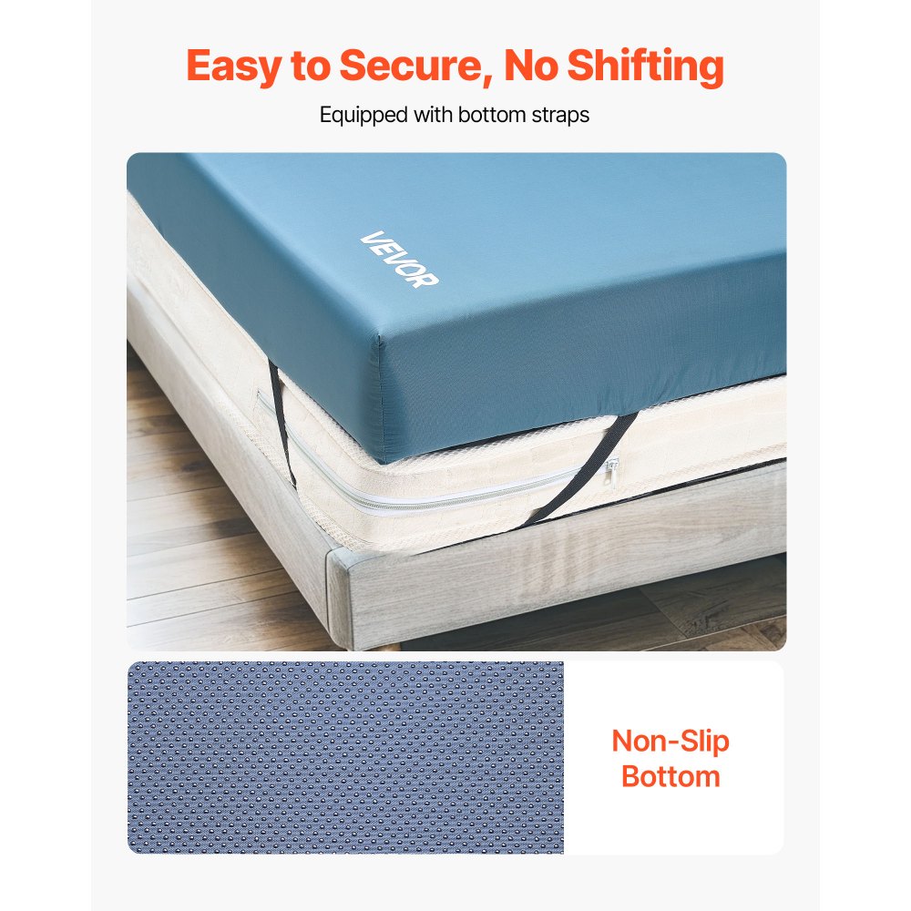 Se mantiene en su lugar, sin deslizamientos: La base antideslizante con partículas antideslizantes mantiene el colchón médico firmemente en su lugar. Incluye correas de seguridad para una fijación estable a camas o colchones, y no se desliza al cambiar de posición ni moverlo