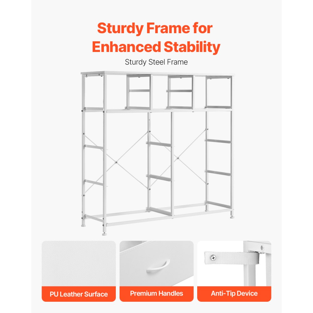 Materiales seleccionados: Los tocadores de armario están confeccionados con tela no tejida transpirable y acabados con cuero PU, lo que garantiza que sus artículos se mantengan ventilados y hace que la limpieza diaria sea muy sencilla