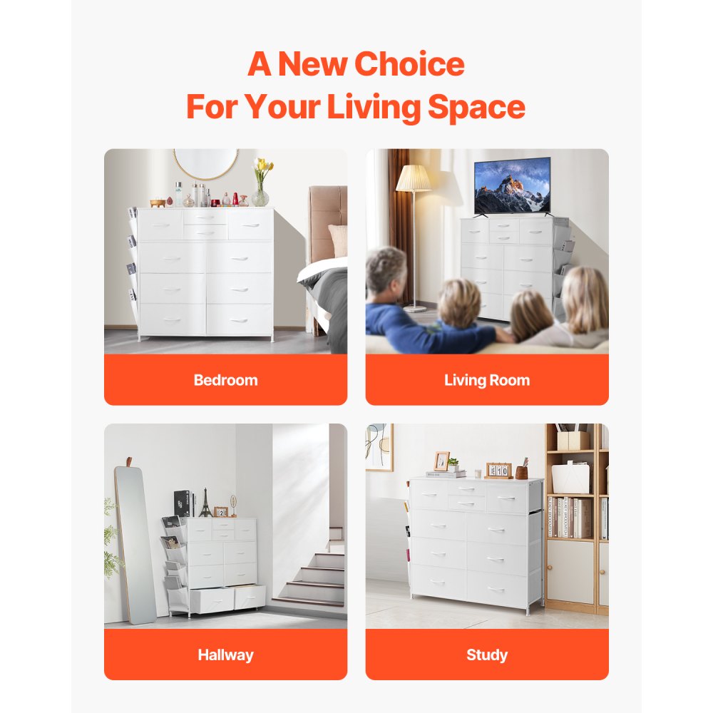 Hogar con estilo: Nuestra cómoda de tela con cajones presenta un diseño minimalista que realza la decoración de su hogar sin esfuerzo. Combina a la perfección con varios estilos, realzando la estética de su hogar y mostrando su gusto único. La amplia superficie superior no solo ofrece almacenamiento adicional, sino que también funciona como soporte de TV, maximizando la eficiencia y versatilidad de su espacio