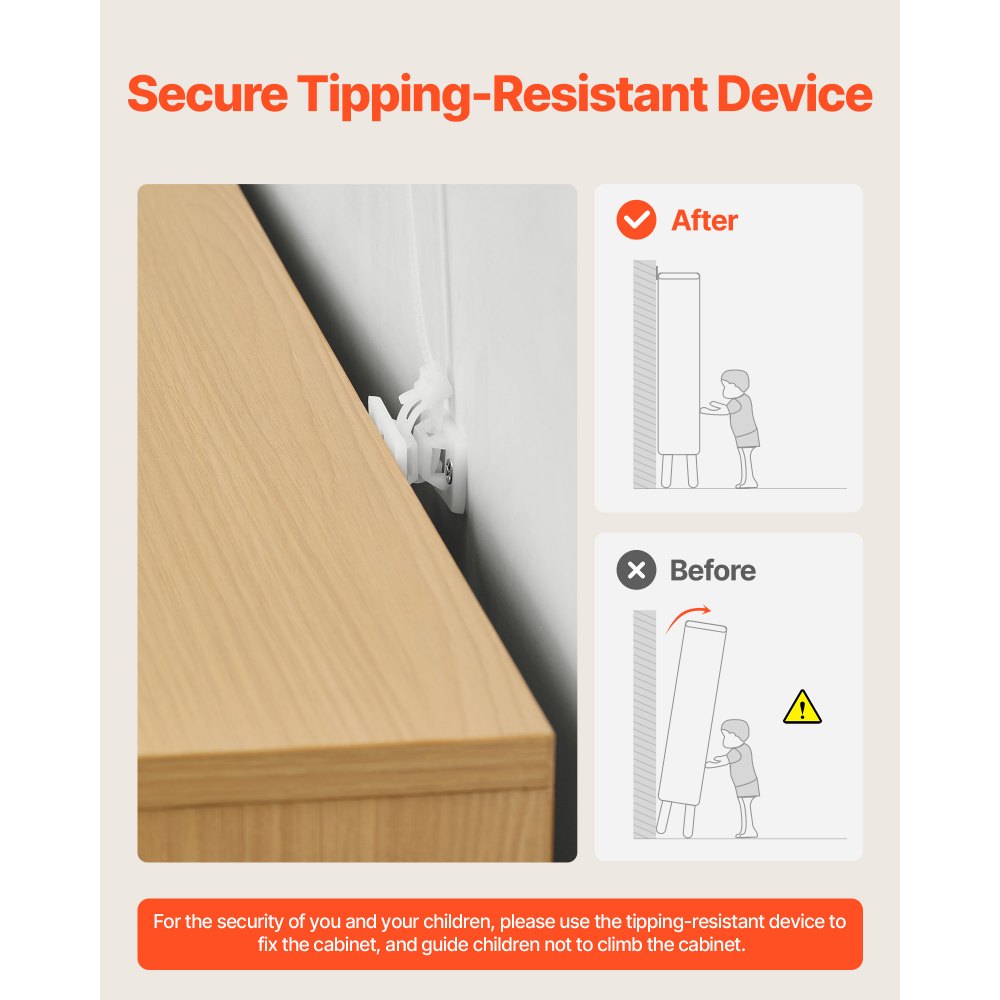 Seguro y estable: Nuestro armario para dormitorio soporta con seguridad hasta 13,61 kg en la parte superior y 10 kg por cajón. El dispositivo antivuelco proporciona mayor seguridad y estabilidad. Instale el dispositivo antivuelco antes de usar el armario