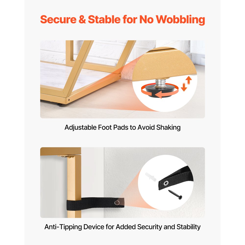 Detalles bien pensados: Las almohadillas ajustables se adaptan a suelos irregulares, garantizando la estabilidad de la mesa y evitando que se tambalee, a la vez que protegen el suelo de arañazos. El dispositivo antivuelco añade seguridad adicional; instálelo para una mayor estabilidad