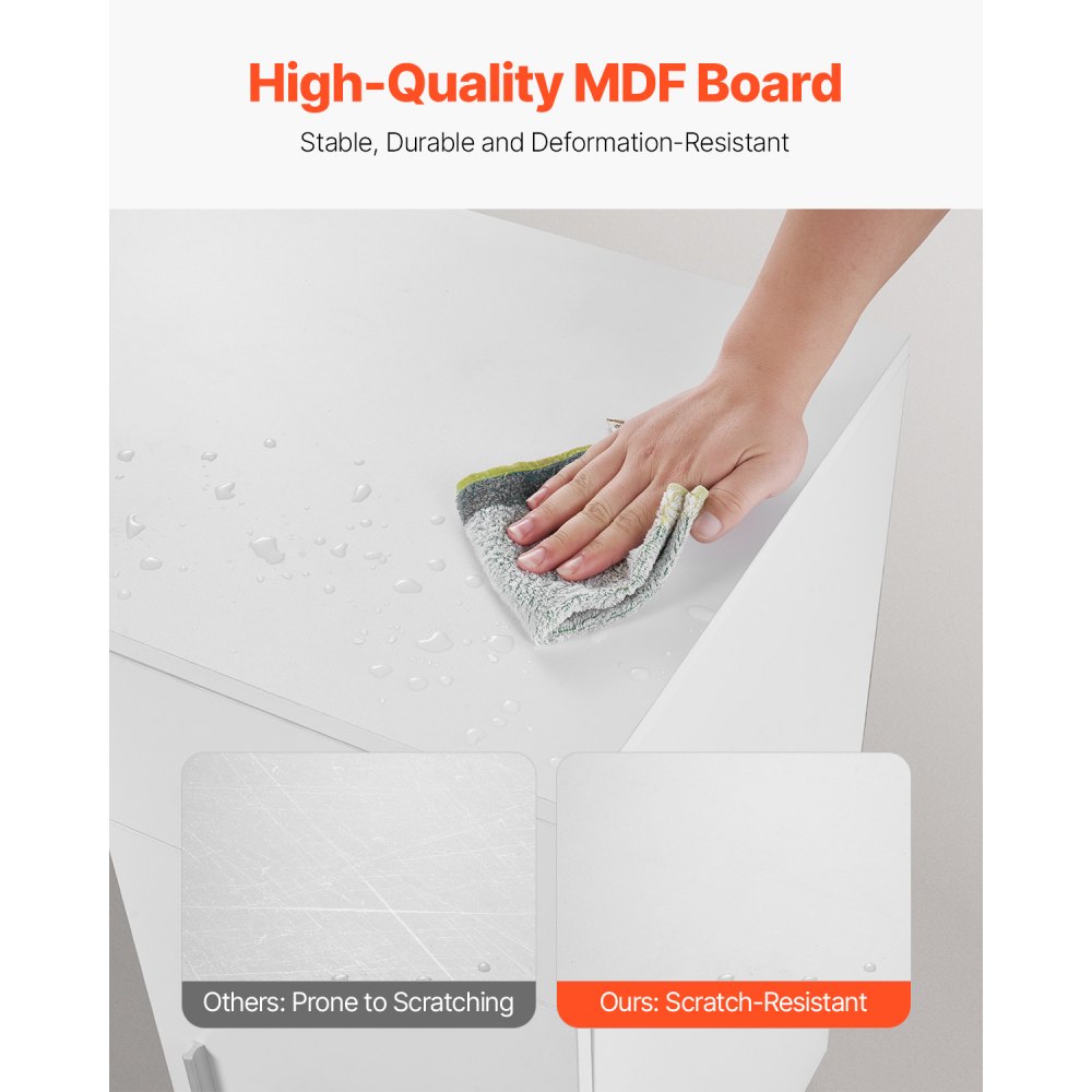 Fácil de limpiar: Con un acabado laminado de melamina de doble cara y bordes de PVC, la superficie del escritorio con cajones es lisa y resistente a las manchas, y solo requiere una limpieza suave con un paño húmedo para mantenerlo limpio