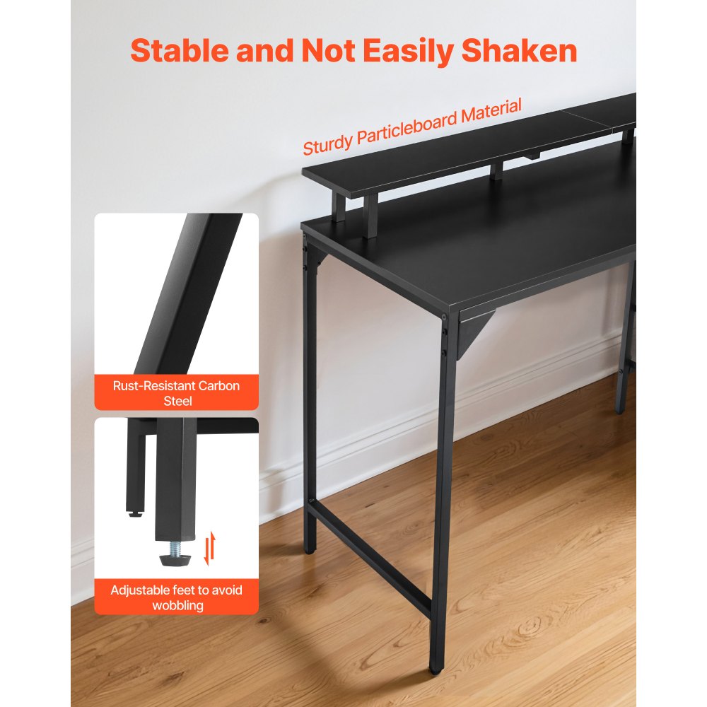 Estructura de marco reforzada: Hecha de un marco de acero al carbono de alta calidad con un acabado resistente a la oxidación, la base reforzada proporciona un soporte estable con menos bamboleo y 4 patas ajustables ayudan a nivelar el escritorio de la oficina en pisos irregulares