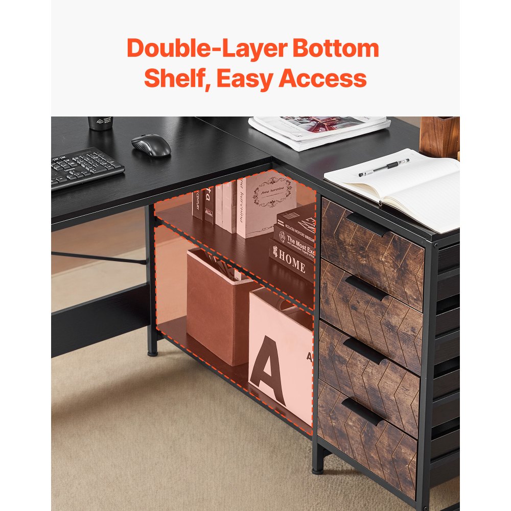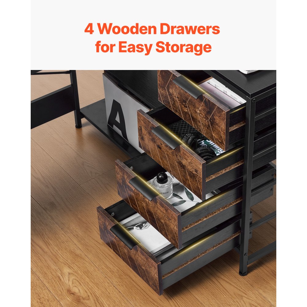 Cuatro cajones de madera: El escritorio en L cuenta con 4 cajones de madera para guardar documentos, accesorios y elementos esenciales, manteniendo el escritorio de su computadora ordenado y los artículos fácilmente accesibles