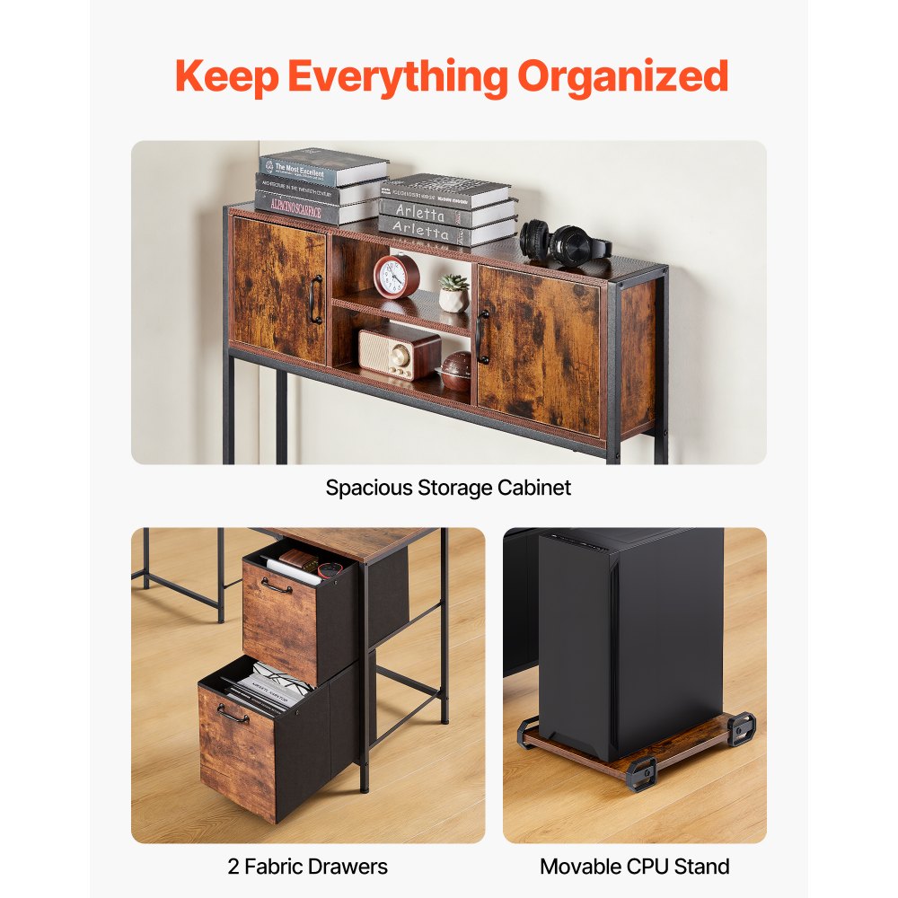Amplio espacio de almacenamiento: Este escritorio de esquina cuenta con 2 espaciosos gabinetes de almacenamiento y 2 cajones de tela para una organización flexible, lo que le permite guardar de forma ordenada lo esencial y mantener los artículos de uso frecuente al alcance de la mano