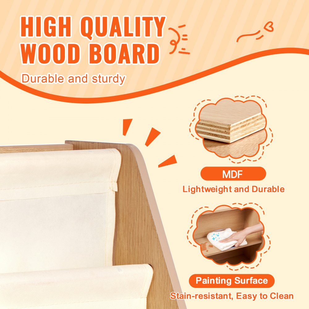 Seguro y considerado: el estante para libros para bebés VEVOR está diseñado con seguridad y durabilidad. Con bordes redondeados, nuestros cubos garantizan que los niños estén seguros durante el uso, lo que brinda tranquilidad a los padres.