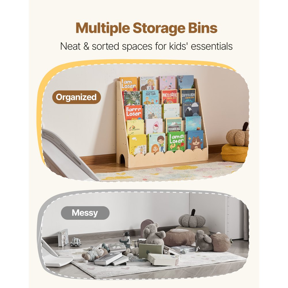 Organización optimizada: Esta estantería infantil ondulada cuenta con cinco compartimentos. Sus bordes curvos y su diseño abierto garantizan una organización ordenada de libros, juguetes y otros artículos. Esto ayuda a los niños a encontrar todo rápidamente y a desarrollar hábitos de organización desde pequeños