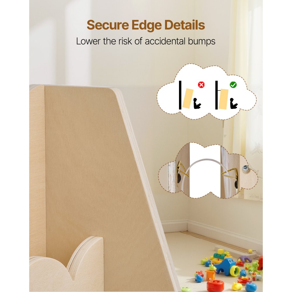 Diseño seguro: Robusto y fiable. La estantería con bordes festoneados y protección antivuelco evita que se vuelque y ofrece mayor seguridad a los padres