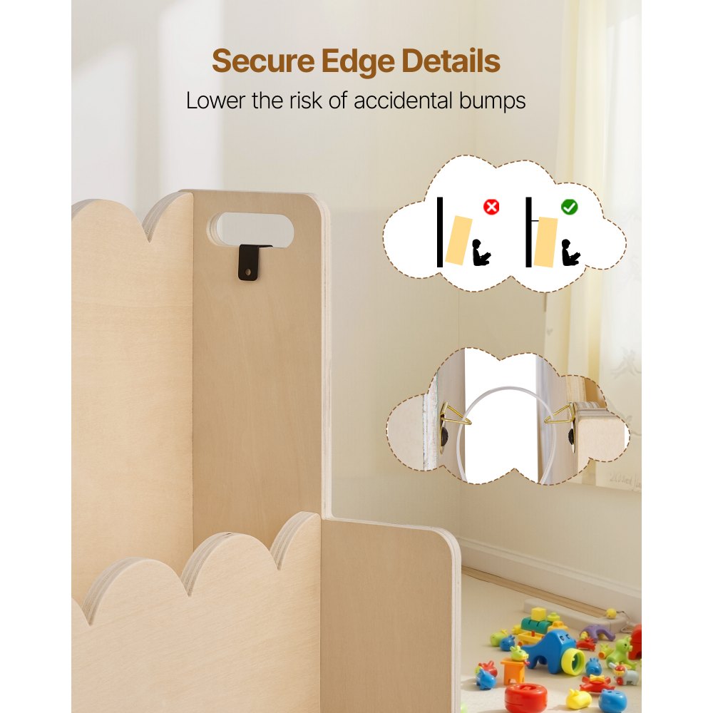 Materiales de alta calidad: Esta estantería festoneada está fabricada con materiales duraderos y ofrece una estabilidad fiable. Está diseñada para el uso diario y satisfará las necesidades de almacenamiento de su hijo durante años