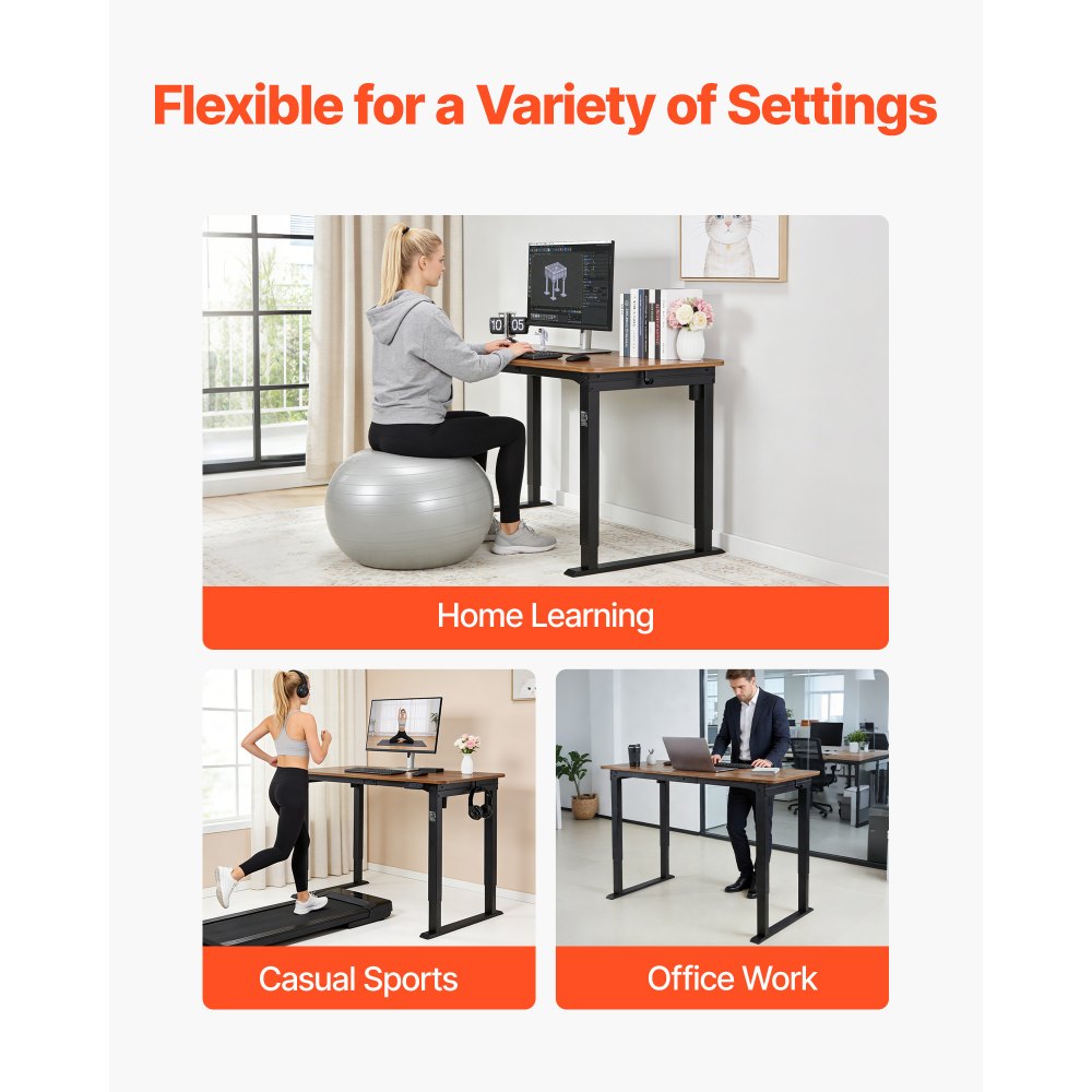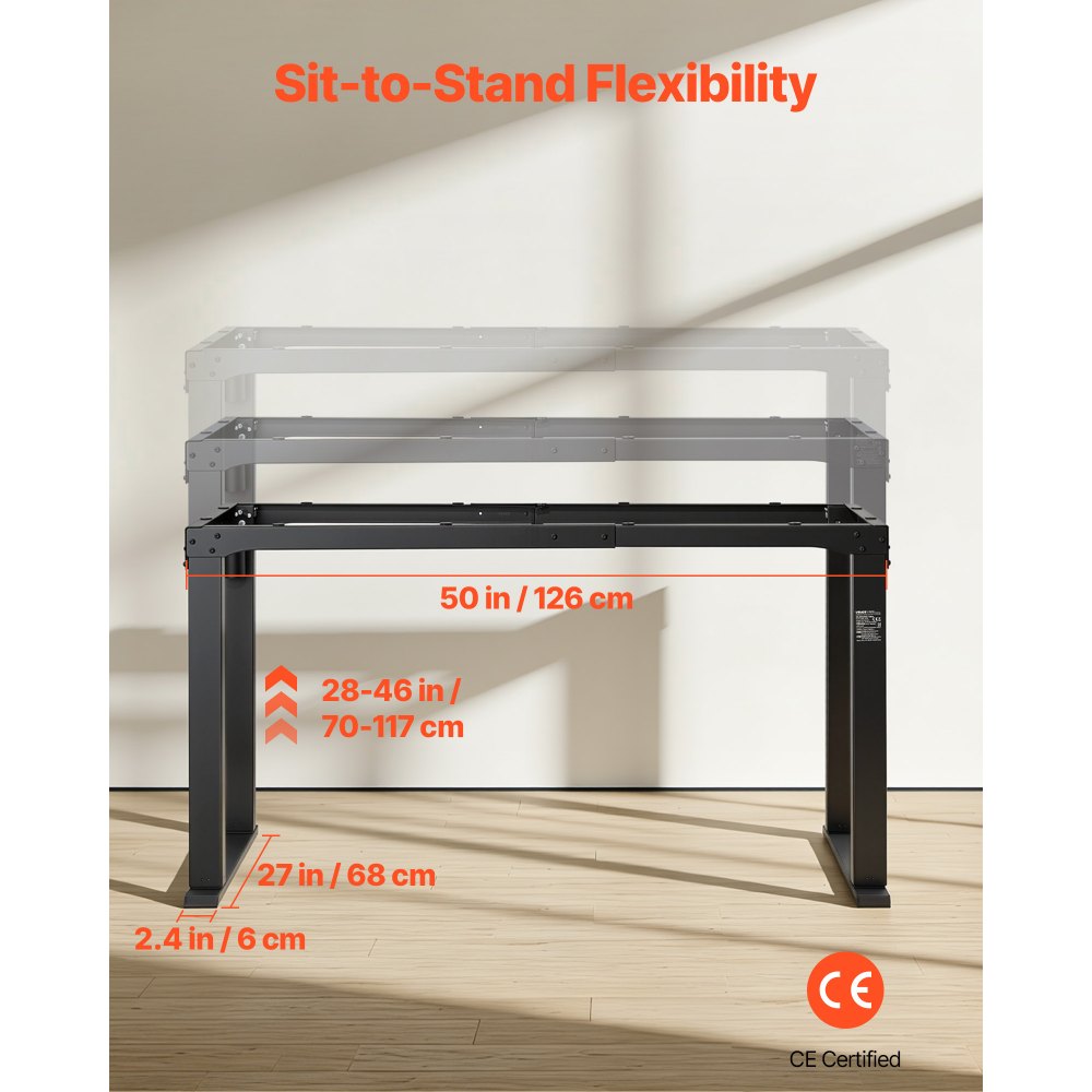 De sentado a de pie: La estructura del escritorio de altura regulable ofrece un rango de altura de 70 cm a 117 cm. Adecuado para usuarios de entre 150 cm y 200 cm de altura, lo que le permite encontrar su postura ideal para trabajar, estar de pie o relajarse en casa