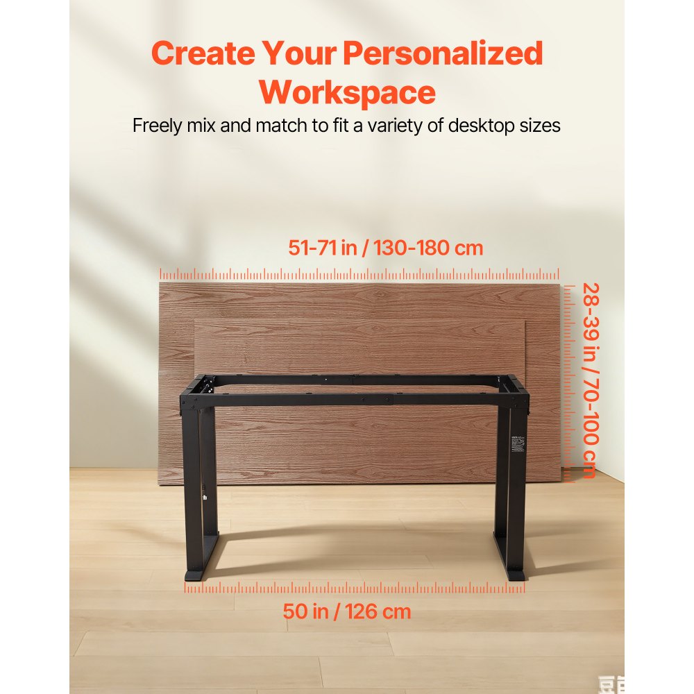 Compatibilidad versátil con tableros: Las patas del escritorio de pie se adaptan a muchos tableros estándar del mercado (Ancho: 70-99 cm, Largo: 130-180 cm). Personaliza tu espacio de trabajo combinando la estructura con el estilo de tablero que prefieras