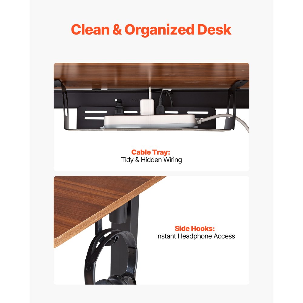 Organización sencilla: Disfrute de una organización sencilla con soluciones de almacenamiento versátiles que incluyen una bandeja para cables debajo del escritorio para ocultar los cables y un gancho para un acceso cómodo a auriculares o bolsos