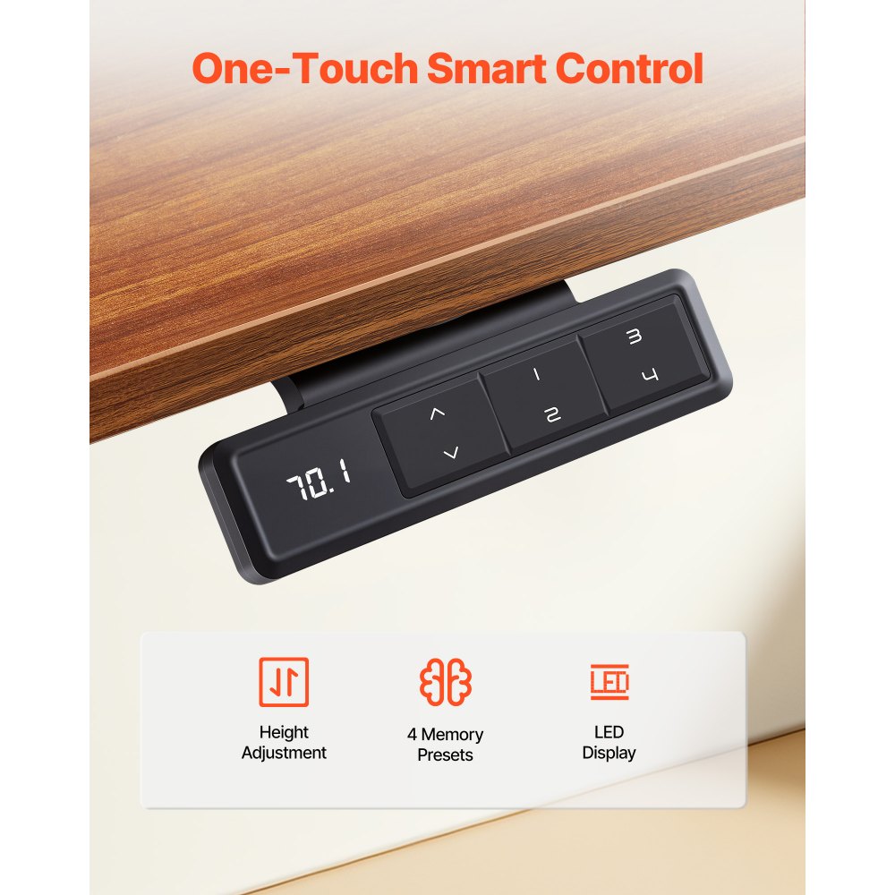Panel de control inteligente: 4 preajustes de memoria con pantalla LED para un control preciso de la altura. Las patas ajustables de esta mesa admiten la conversión de unidades pulgadas/cm, lo que permite ajustes rápidos y una fácil personalización para diferentes preferencias