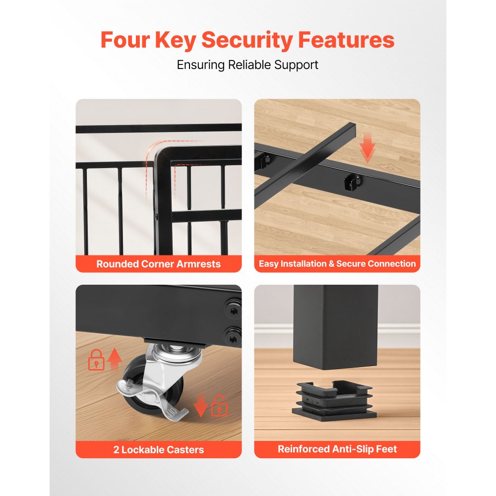 Estructura metálica robusta: Toda la estructura está fabricada en metal resistente, con una capacidad máxima de 399,16 kg, lo que garantiza una gran estabilidad durante el uso. Ofrece a los huéspedes una experiencia de descanso placentera. El revestimiento resistente a la corrosión mejora las propiedades de la estructura a prueba de humedad y corrosión para una larga durabilidad