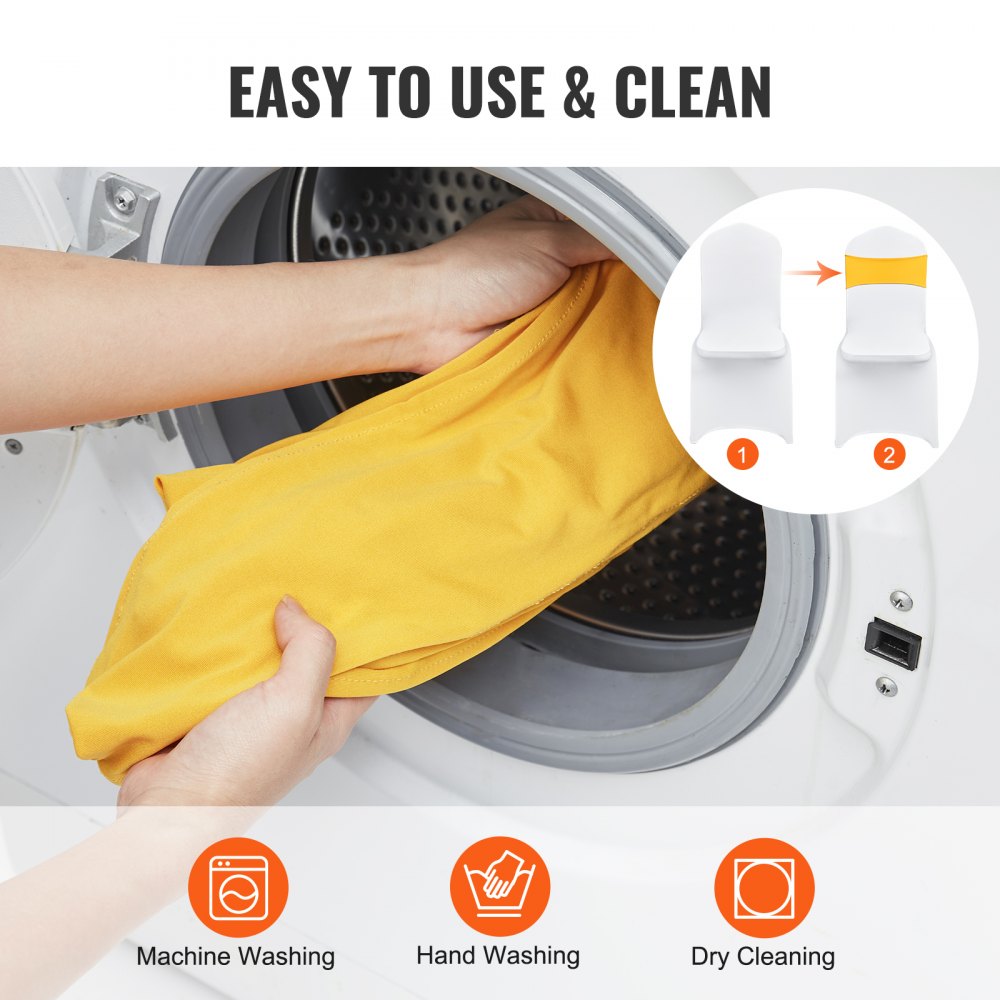 Fajas Elásticas de Spandex para Sillas, Fundas para Sillas y Bandas Elásticas para Sillas con Hebilla Redonda, Bandas Elásticas para Sillas, para Bodas, Fiestas(50 Piezas, Amarillo Dorado) - Material de oficina