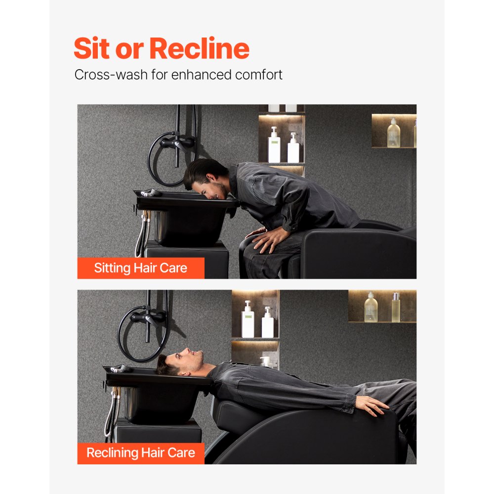 Uso cómodo: Los bordes del recipiente para champú están diseñados para adaptarse suavemente a la curva del cuello. El ángulo ajustable permite que los usuarios se sienten o se reclinen según sus preferencias, junto con un cabezal de ducha para una experiencia relajante al lavarse el cabello