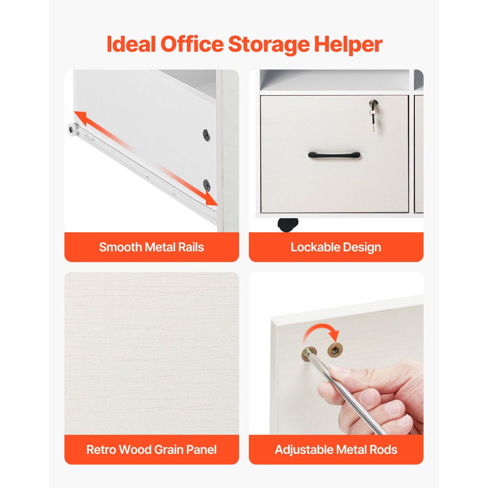 Detalles de alta calidad: Los rieles deslizantes metálicos y las manijas ergonómicas garantizan una apertura y cierre suaves de los cajones. Los amplios cajones admiten hojas A4 planas sin arrugas, mientras que los diseños con cerradura protegen su privacidad. Ideal para funcionalidad y tranquilidad