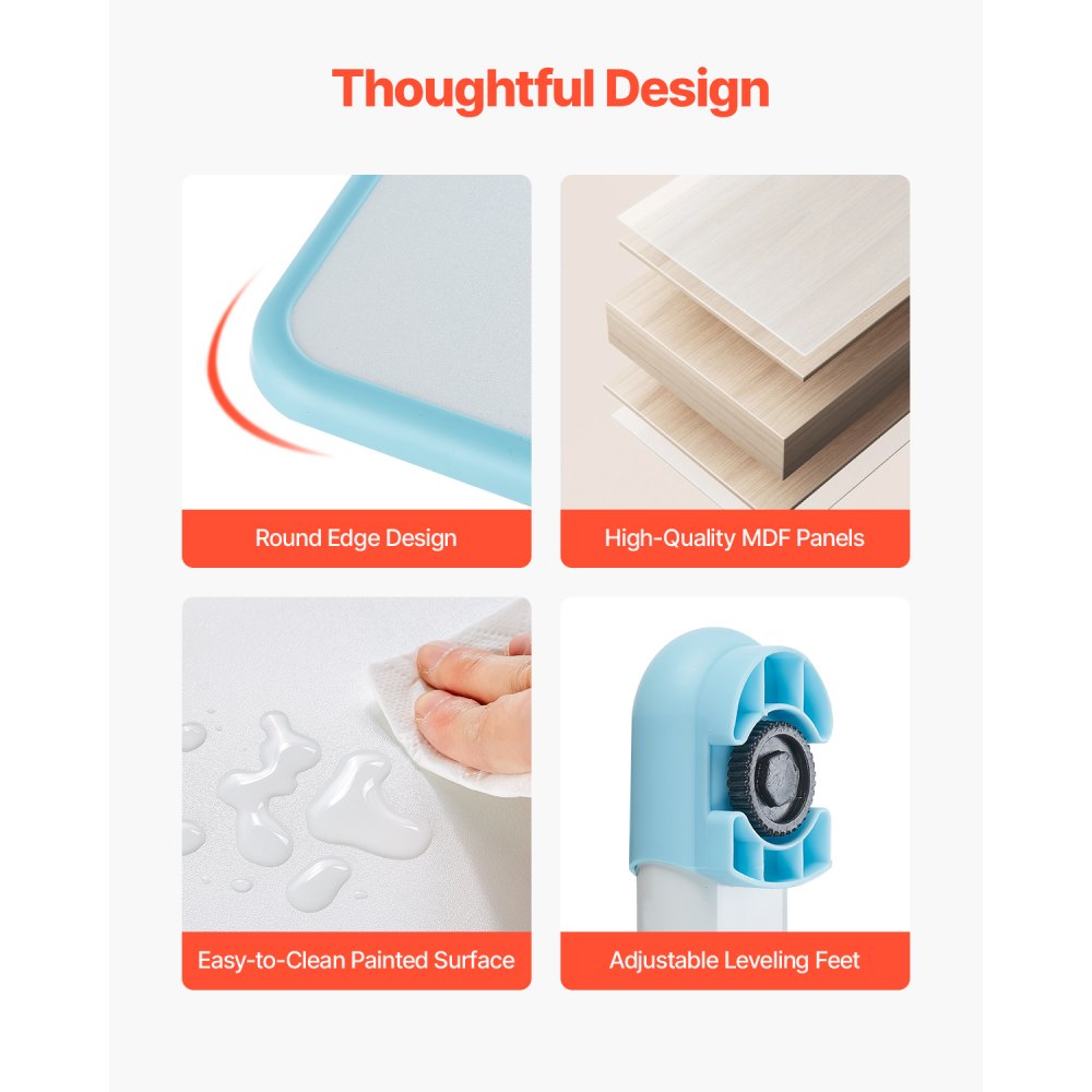 Construcción duradera y resistente: Fabricado con paneles de MDF de alta calidad y una estructura de acero resistente, este juego de escritorio y silla está diseñado para durar. Puede soportar el uso diario ya sea que su hijo esté aprendiendo o jugando, brindándole un apoyo confiable todos los días