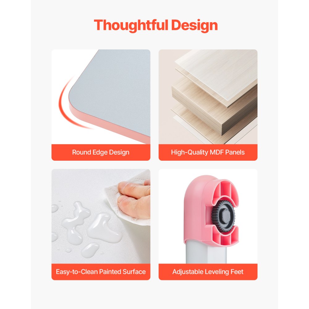 Construcción duradera y resistente: Fabricado con paneles de MDF de alta calidad y una estructura de acero resistente, este juego de escritorio y silla está diseñado para durar. Puede soportar el uso diario ya sea que su hijo esté aprendiendo o jugando, brindándole un apoyo confiable todos los días