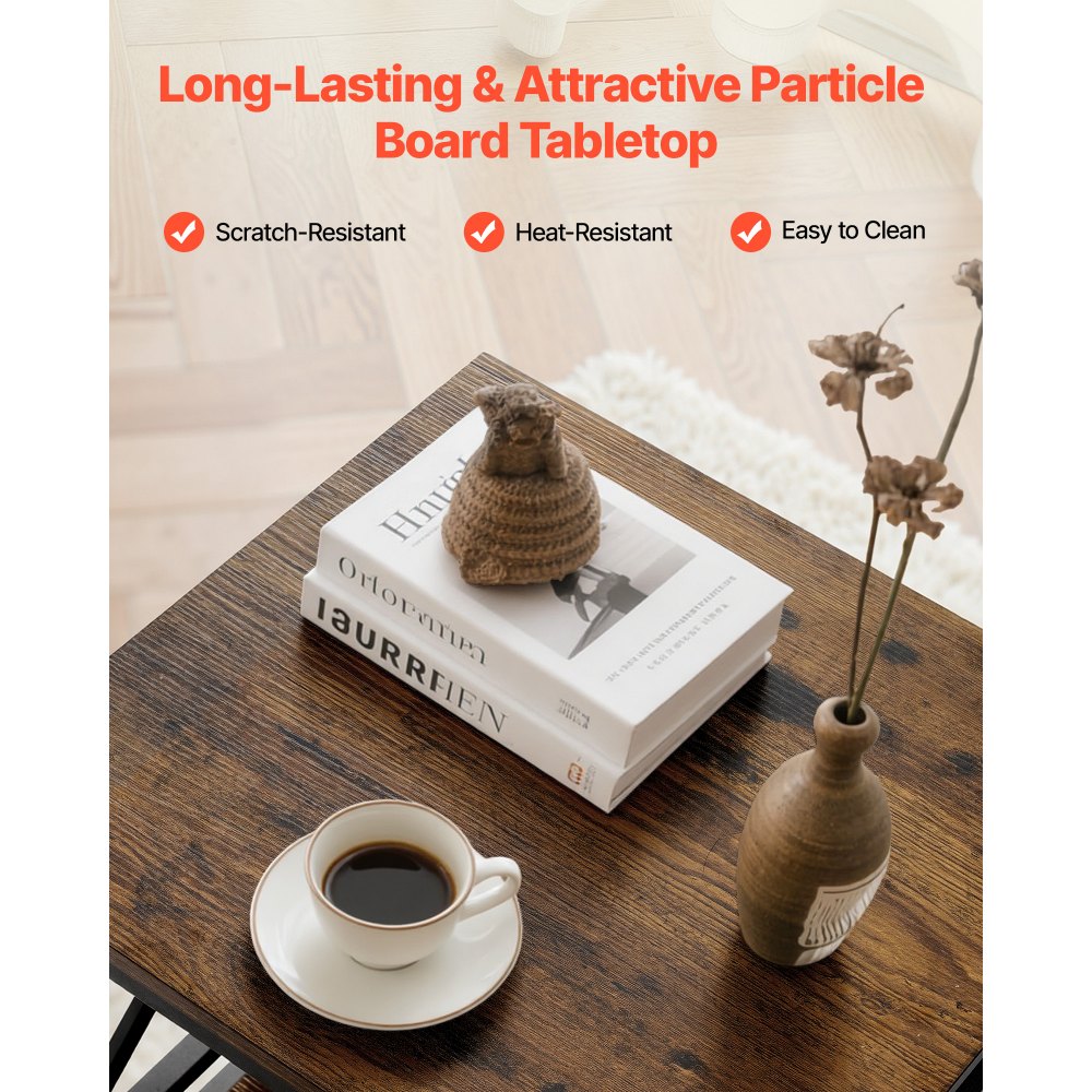 Mesa Auxiliar Cuadrada 2 Niveles con Estantes Abiertos, Mesita de Noche con Marco de Metal en Forma de X, Escritorio de Centro 45,7x45,7x51 cm, para Sala de Estar, Dormitorio, Oficina, Marrón