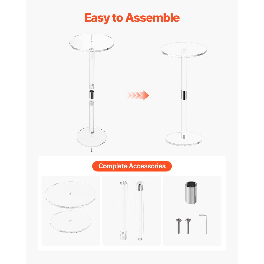 Mesa Auxiliar de Acrílico 25,4 x 25,4 x 54 cm, Mesa de Centro Redonda Transparente Carga de 5 kg, Mesita de Noche con Base Reforzada Estable para Tartas, Café, Bebidas, Comida, Aperitivos - Material de oficina