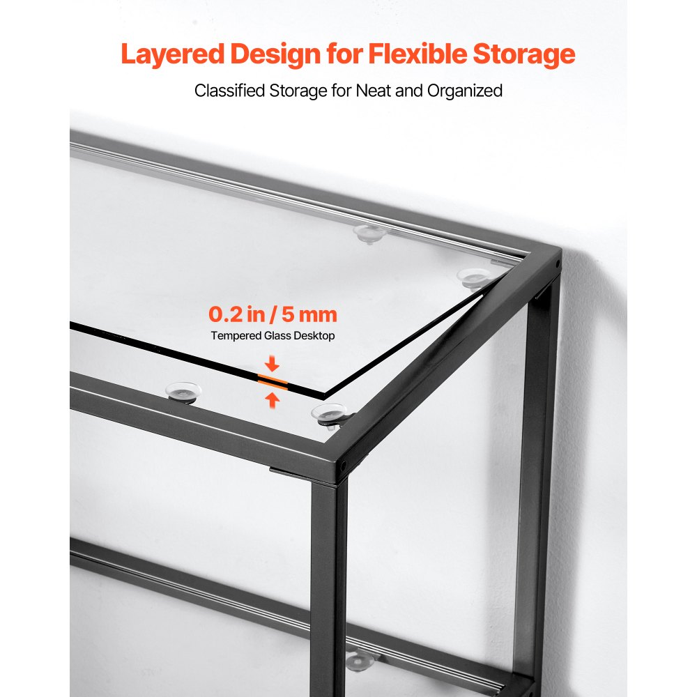 Mesa Consola de Vidrio 3 Niveles 100 x 30 x 72,9 cm Mesa Auxiliar Rectangular para Sofá con Tablero de Vidrio Templado, Patas de Hierro para Sala de estar, Pasillo, Entrada, Recibidor, Negro - Material de oficina