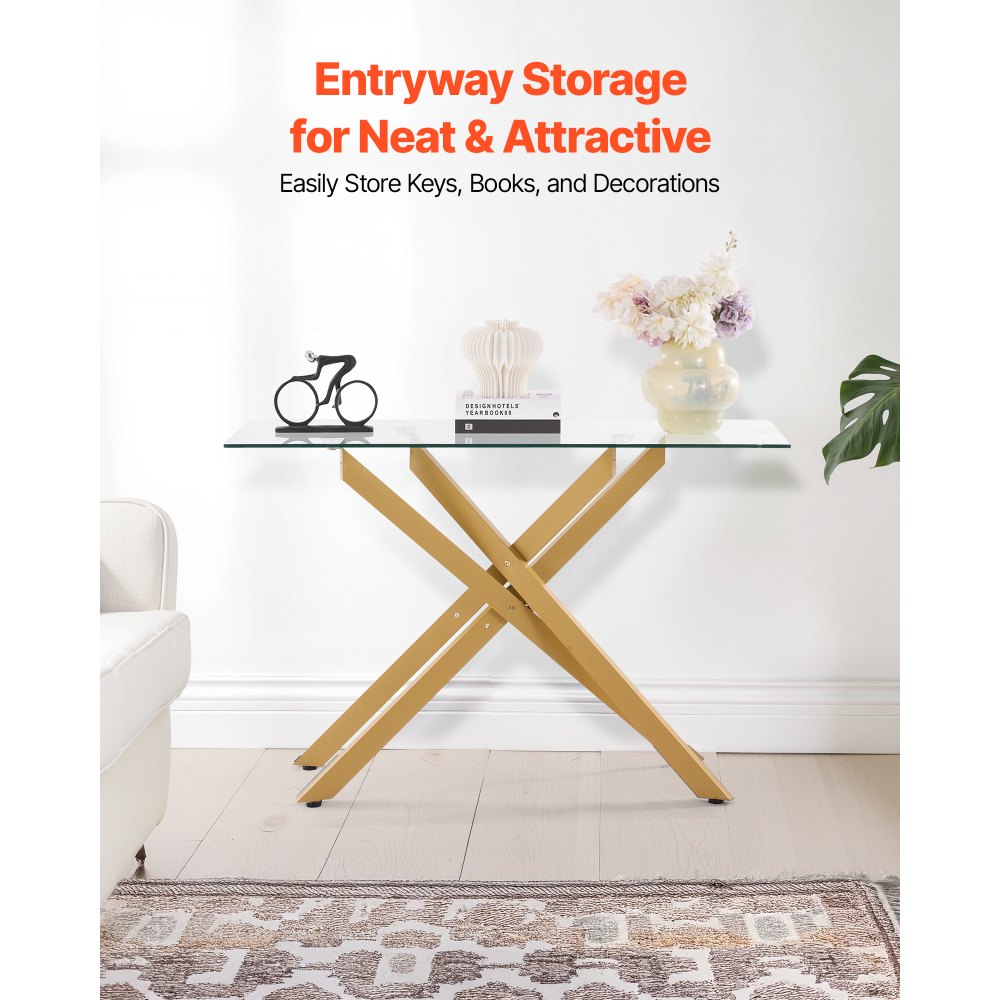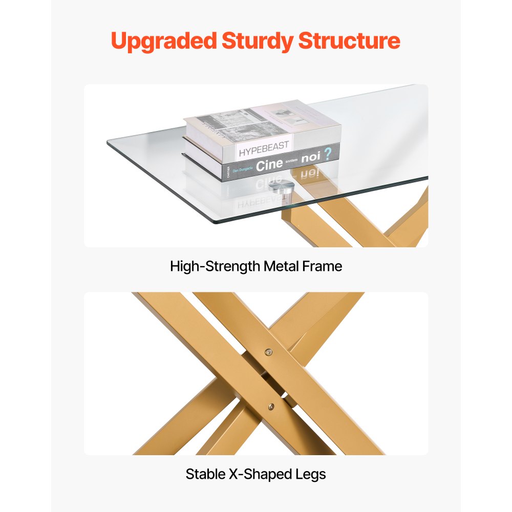 Mesa de Centro de Vidrio 114,3 x 45,7 x 76,2 cm Mesa Auxiliar Rectangular para Sofá con Tablero de Cristal Templado Patas Cruzadas de Hierro para Sala de estar, Entrada, Recibidor, Dorado - Material de oficina