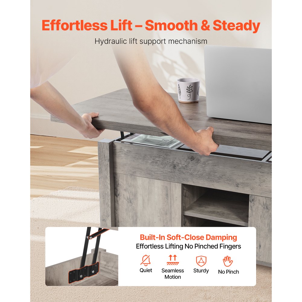 Versatilidad todo en uno: Pase al instante de relajarse a trabajar: ahorra espacio, es eficiente y está diseñada para la multitarea moderna. La mesa de centro elevable alcanza la altura ideal para trabajar sin esfuerzo