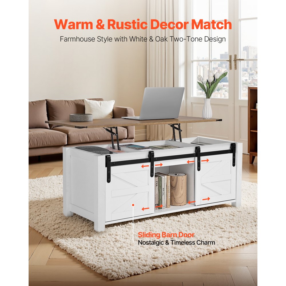 Mesa de Centro Elevable 120 cm, Mesa de Café con Puerta Estilo Granero y Compartimento de Almacenamiento Oculto, Mesita de Salón o Comedor Tablero de Color Marrón para Salón, Oficina, Hogar - Material de oficina