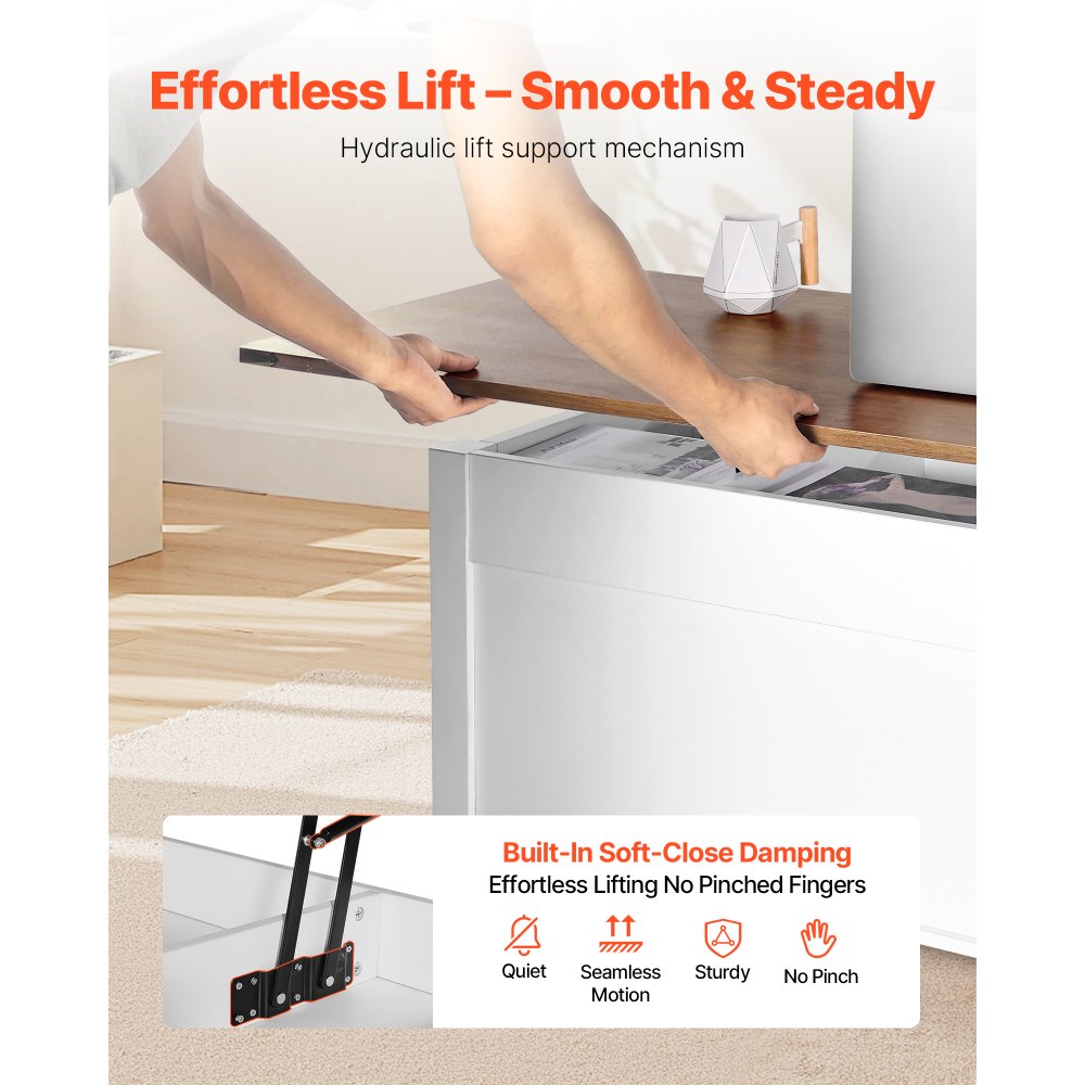 Versatilidad todo en uno: Pase al instante de relajarse a trabajar: ahorra espacio, es eficiente y está diseñada para la multitarea moderna. La mesa de centro elevable se eleva hasta 620 mm, alcanzando la altura ideal para trabajar sin esfuerzo