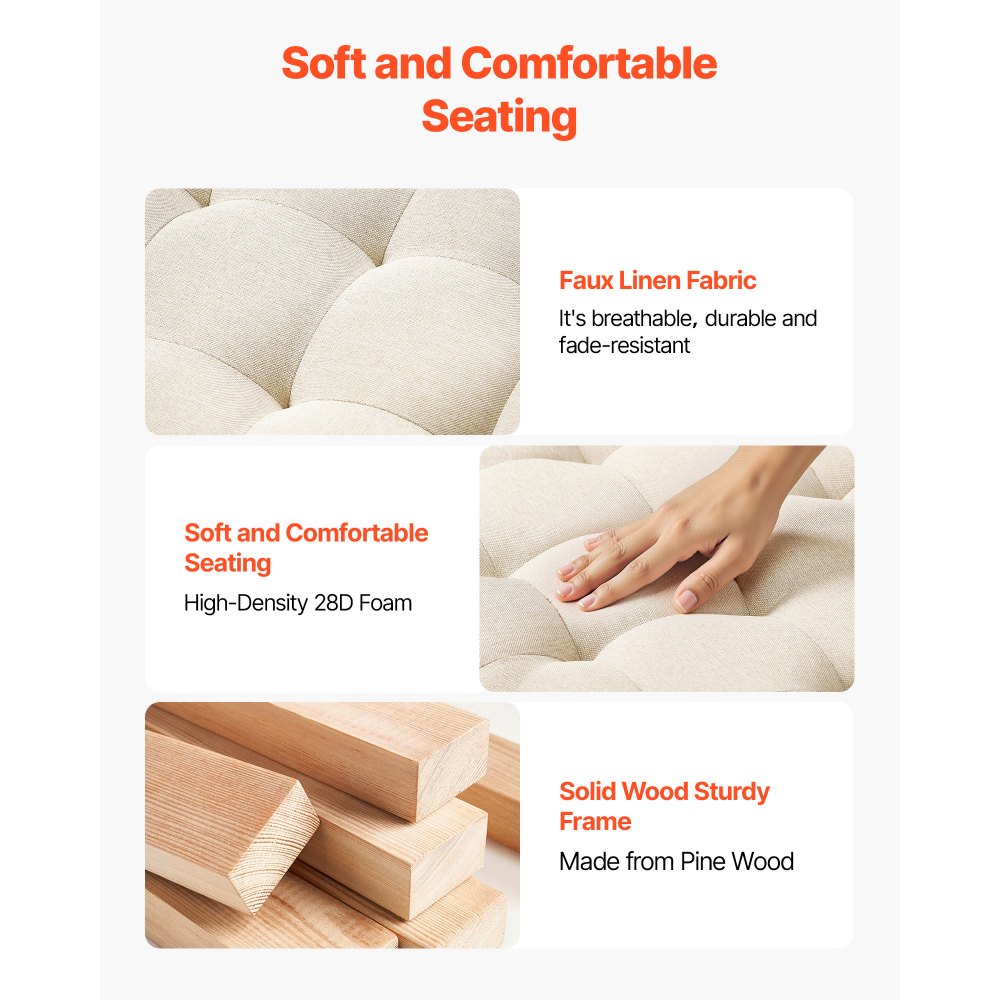 Tela de lino de alta calidad: El cojín capitoné para mesa de centro está relleno de espuma de alta densidad 28D, que proporciona suavidad y un excelente soporte. Mantiene su forma incluso después de estar sentado o de colocar objetos sobre él durante largos periodos, ofreciendo comodidad y resistencia duraderas