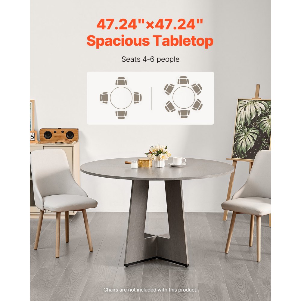 Mesa de comedor espaciosa: Esta mesa de comedor redonda tiene un diámetro de tablero de 120 cm, con un diseño compacto pero elegante que puede acomodar cómodamente de 2 a 4 personas, lo que la convierte en una opción ideal para espacios más pequeños. Su amplia superficie ofrece un amplio espacio de trabajo en un espacio limitado, lo que brinda comodidad y conveniencia para cenar, trabajar, leer o tener conversaciones informales