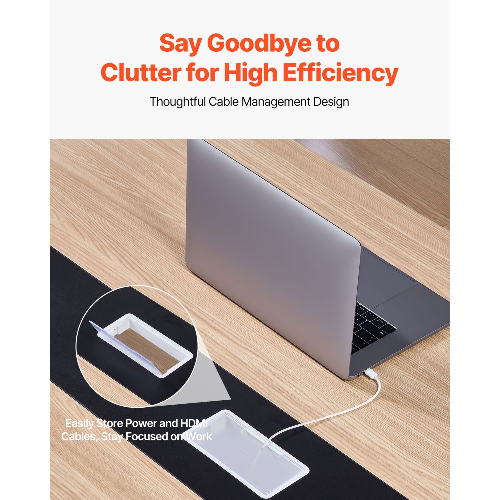 Diseño inteligente: La mesa de conferencias resistente a rayones es resistente a bolígrafos y reglas, e incluye pasacables para guardar los cables de alimentación y HDMI de forma ordenada. Cada pata cuenta con almohadillas para evitar rayones o abolladuras en el suelo, lo que garantiza un trabajo seguro incluso en espacios temporales