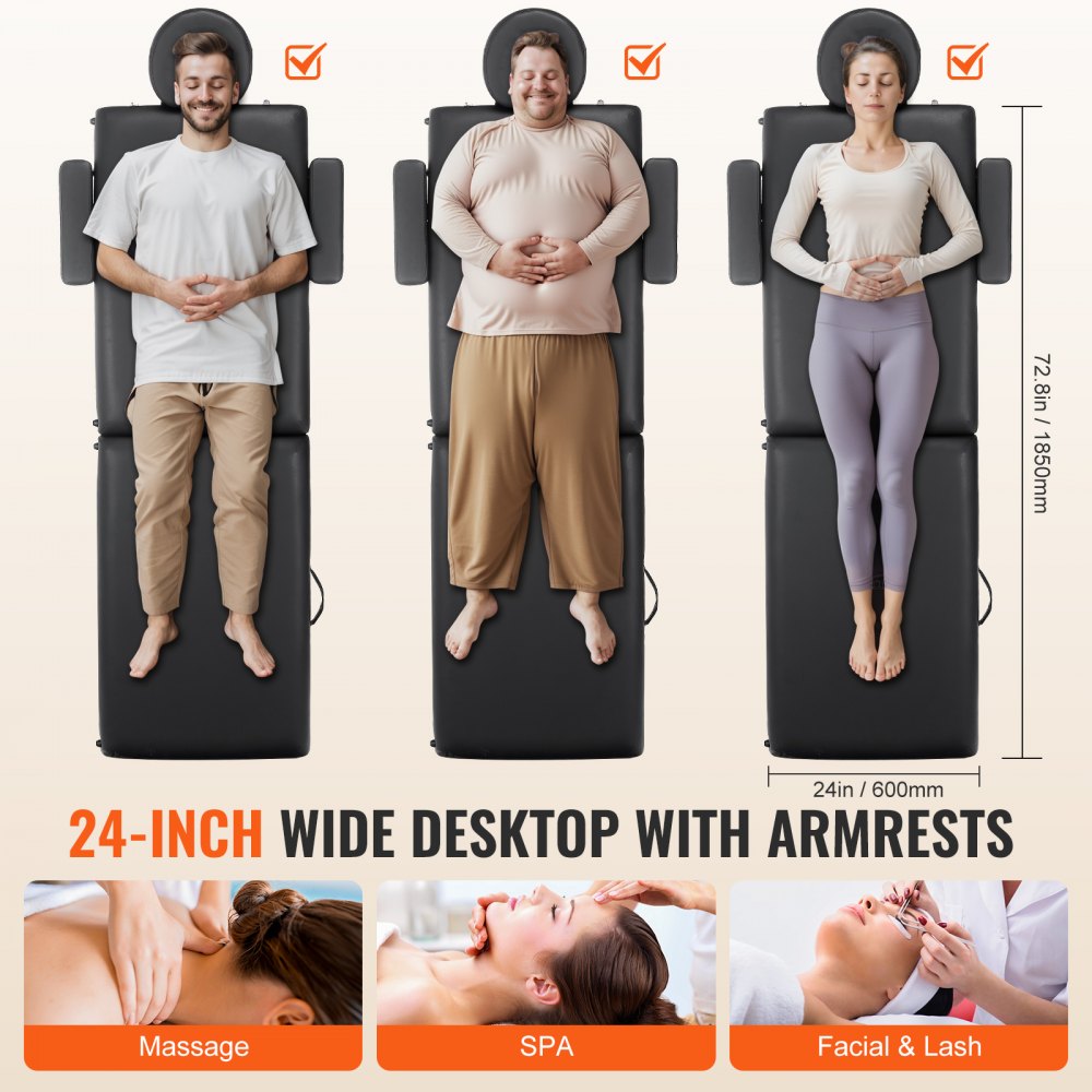Robusta y liviana: fabricada con madera de haya y madera contrachapada espesa, la camilla de masaje profesional VEVOR de 24" W cuenta con una robusta capacidad de peso de 600 libras, con capacidad para el peso de 2 adultos. A pesar de su resistencia, pesa solo 30 libras y se pliega hasta 24 * 36,4 pulgadas, lo que lo hace portátil sin esfuerzo para uso en exteriores o en viajes.
