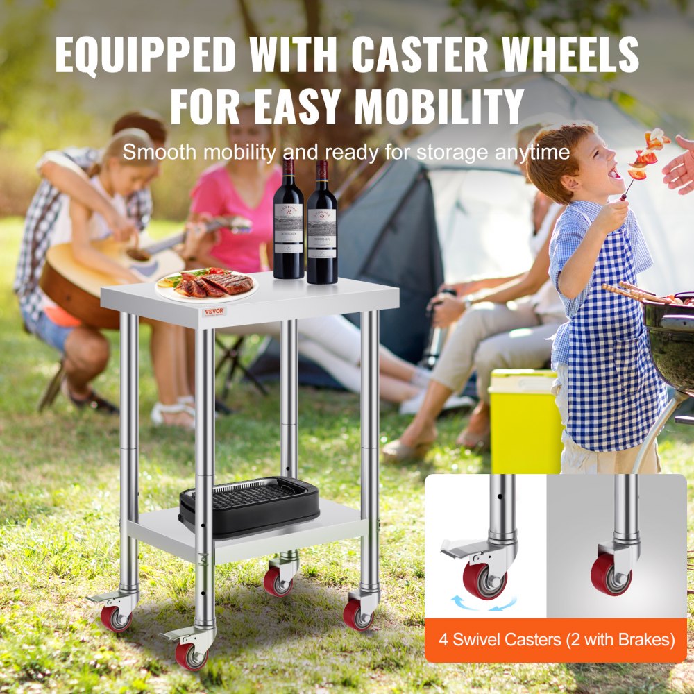 Mesa de Preparación de Comida de Acero Inoxidable 61 x 45,7 x 86,4 cm Tabla de Cocina Profesional Capacidad de Carga 100 kg Tabla de Trabajo de Cocina Catering Ajustable para Restaurante Escuela