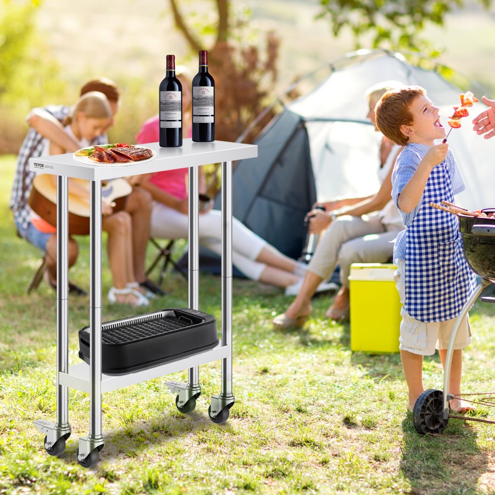 Mesa de Trabajo de Acero Inoxidable 762 x 305 x 954,6 mm Mesa de Preparación de Alimentos con 4 Ruedas Mesa de Cocina Estante Ajustable en Altura para Cocina Restaurante Bar Garaje al Aire Libre - Material de oficina