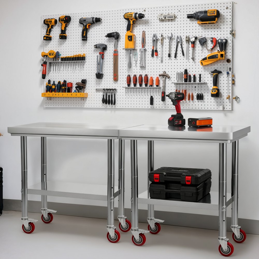 Tamaños prácticos: Disponible en varios tamaños para adaptarse a su espacio. Nuestra mesa de acero inoxidable es ideal para cocinas, garajes o reformas del hogar. Mida su área antes de comprar para un ajuste perfecto