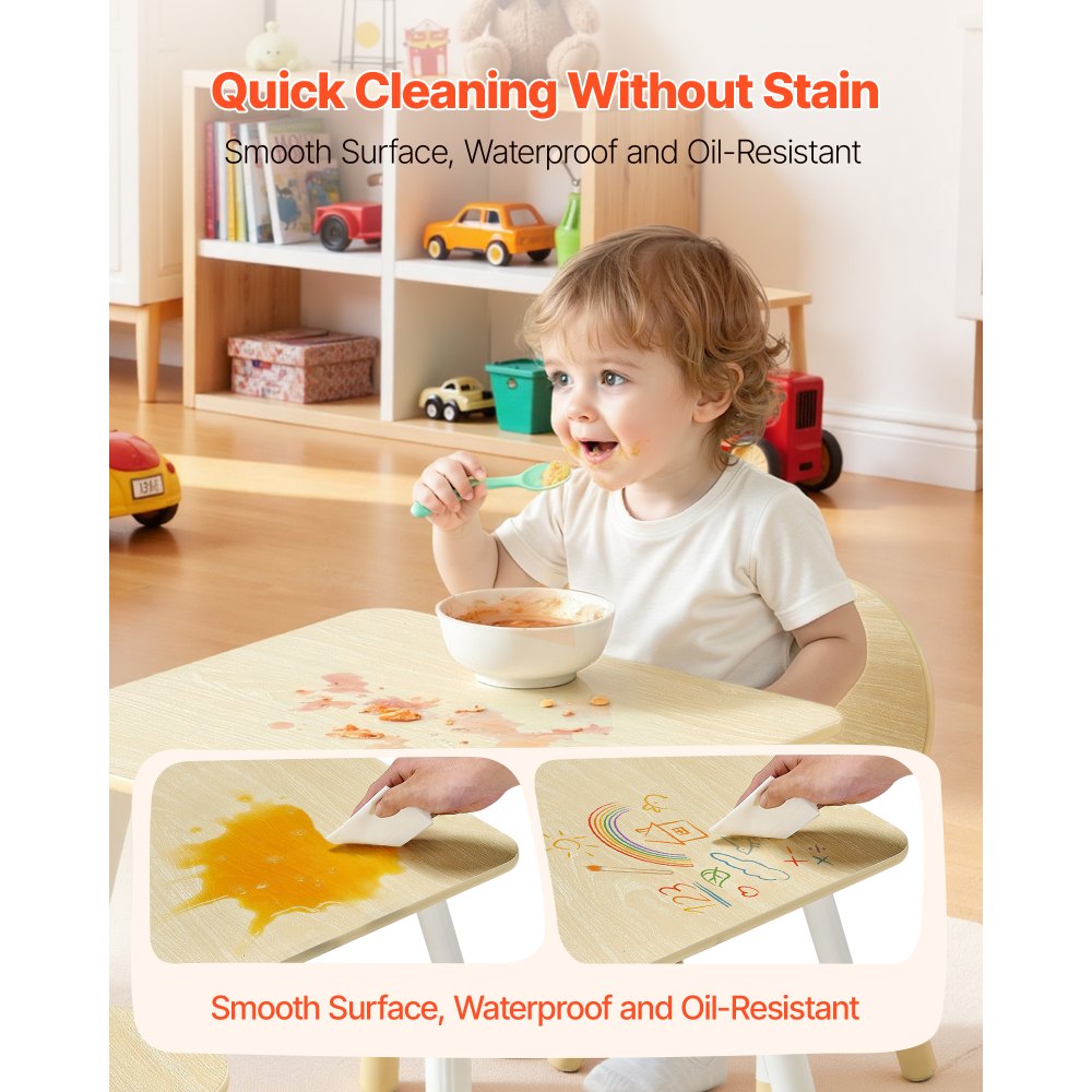 Fácil de limpiar: La superficie lisa e impermeable de esta mesa de juegos infantil repele la suciedad y las migas. Basta con limpiarla con un paño húmedo para mantenerla limpia, ya sea después de jugar o hacer manualidades, para eliminar restos de zumo, comida o marcas de lápiz