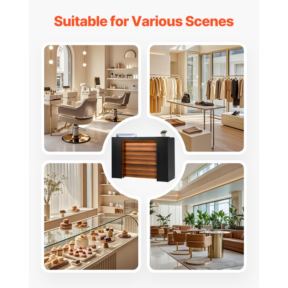 Amplia aplicación: Este escritorio de recepción es ideal para usar en mostradores de caja o entornos minoristas. Combina a la perfección con varios estilos de decoración