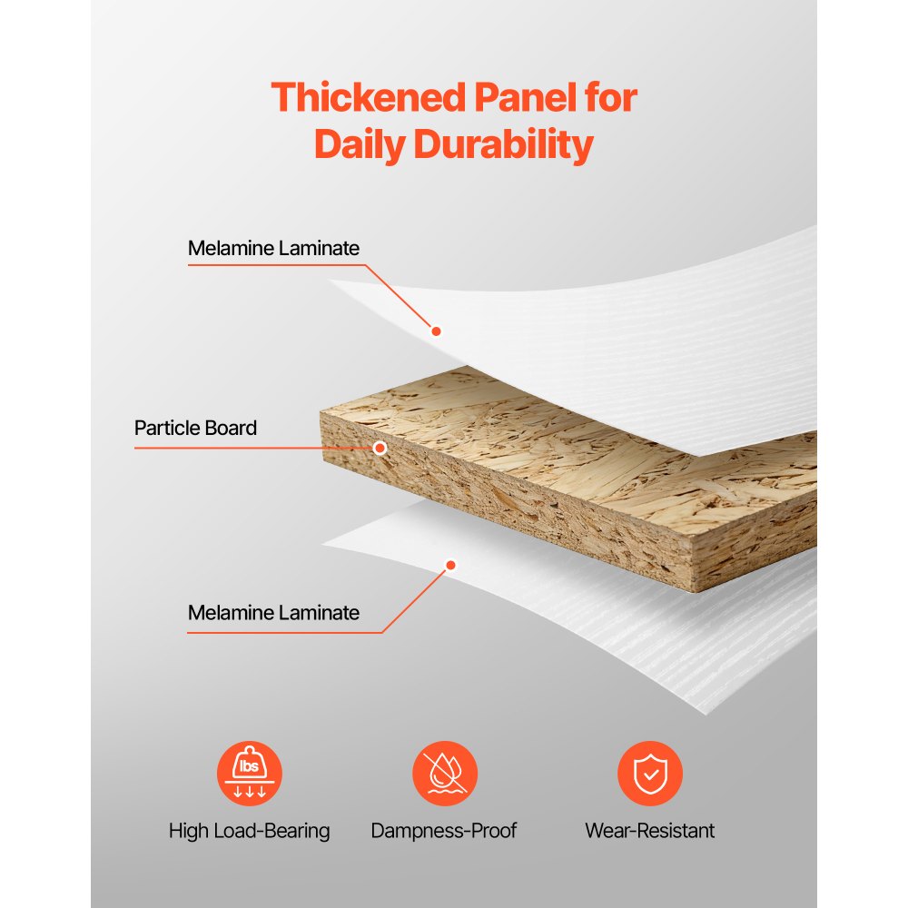 Resistente y duradero: Fabricado con tableros de partículas de 15 mm de grosor, este mostrador de recepción blanco cuenta con bordes lisos para mayor seguridad. La superficie de melamina es duradera y resistente a la humedad, mientras que las juntas herméticas de los paneles y las patas niveladoras mejoran la estabilidad y la durabilidad