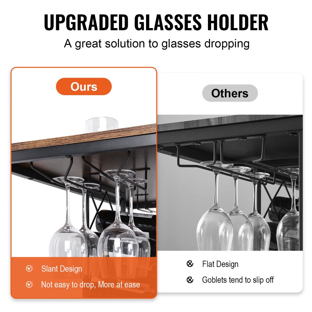 Soporte para copas de vino: en comparación con los soportes para copas de otros, nuestro mueble bar para vinos tiene una entrada inclinada única para el soporte para copas, que lo distingue de otros modelos. Con este diseño, sus gafas no se deslizarán fácilmente cuando las alcance.