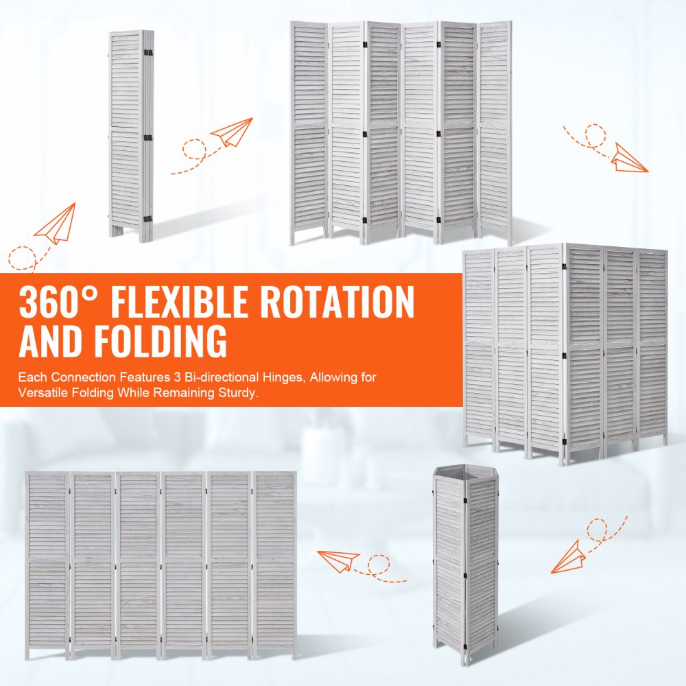 Movimiento flexible de 360°: cada panel divisor de ambientes se conecta con tres resistentes bisagras bidireccionales, lo que le permite girarlo y plegarlo en cualquier ángulo. Cuando no lo use, dóblelo y guárdelo en una esquina. Para mayor estabilidad, colóquelo en un patrón de zigzag para evitar que se vuelque cuando esté completamente extendido.