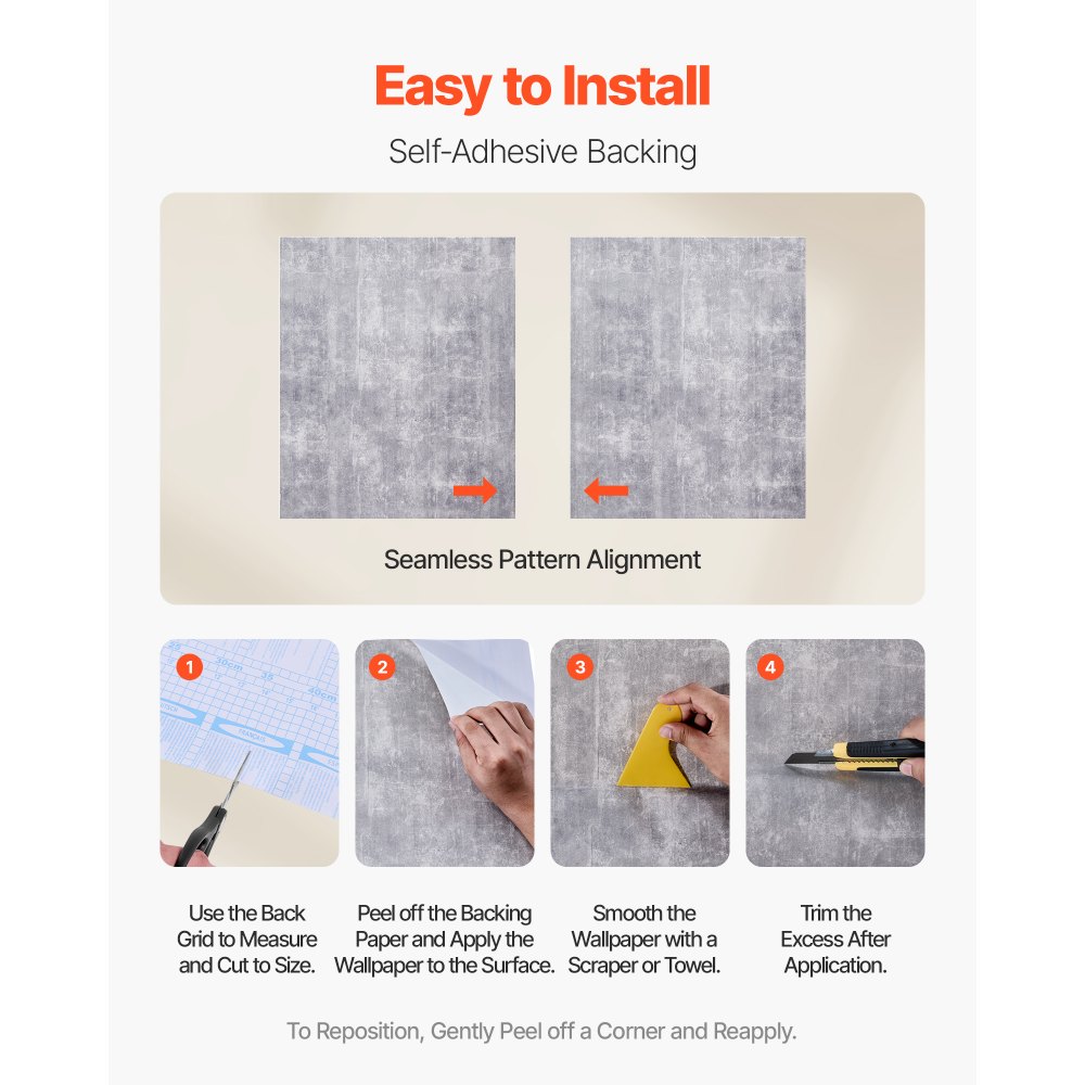 Corte preciso y fácil: Las líneas de cuadrícula en la parte posterior del papel pintado permiten medir y cortar con precisión. Ideal para proyectos de bricolaje limpios y personalizados con mínimo desperdicio