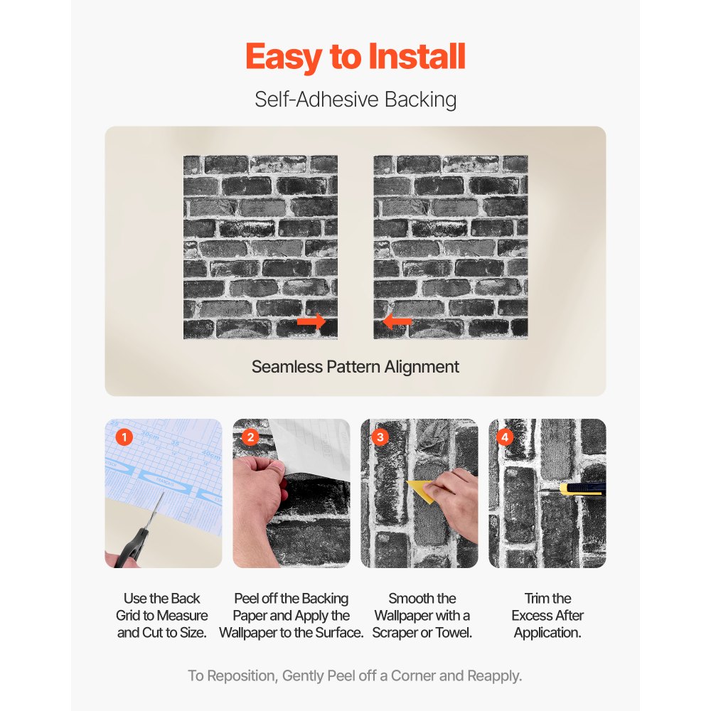 Instalación fácil: Este papel pintado autoadhesivo no requiere pegamento ni herramientas adicionales. Simplemente, despégalo y pégalo, ideal para quienes se inician en el bricolaje y desean renovar su espacio de forma rápida y sencilla